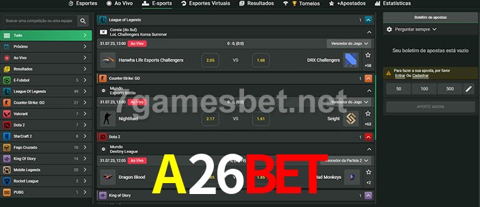 A aposta A26Bet oferece aos jogadores a experiência mais conveniente de apostas em eSports!